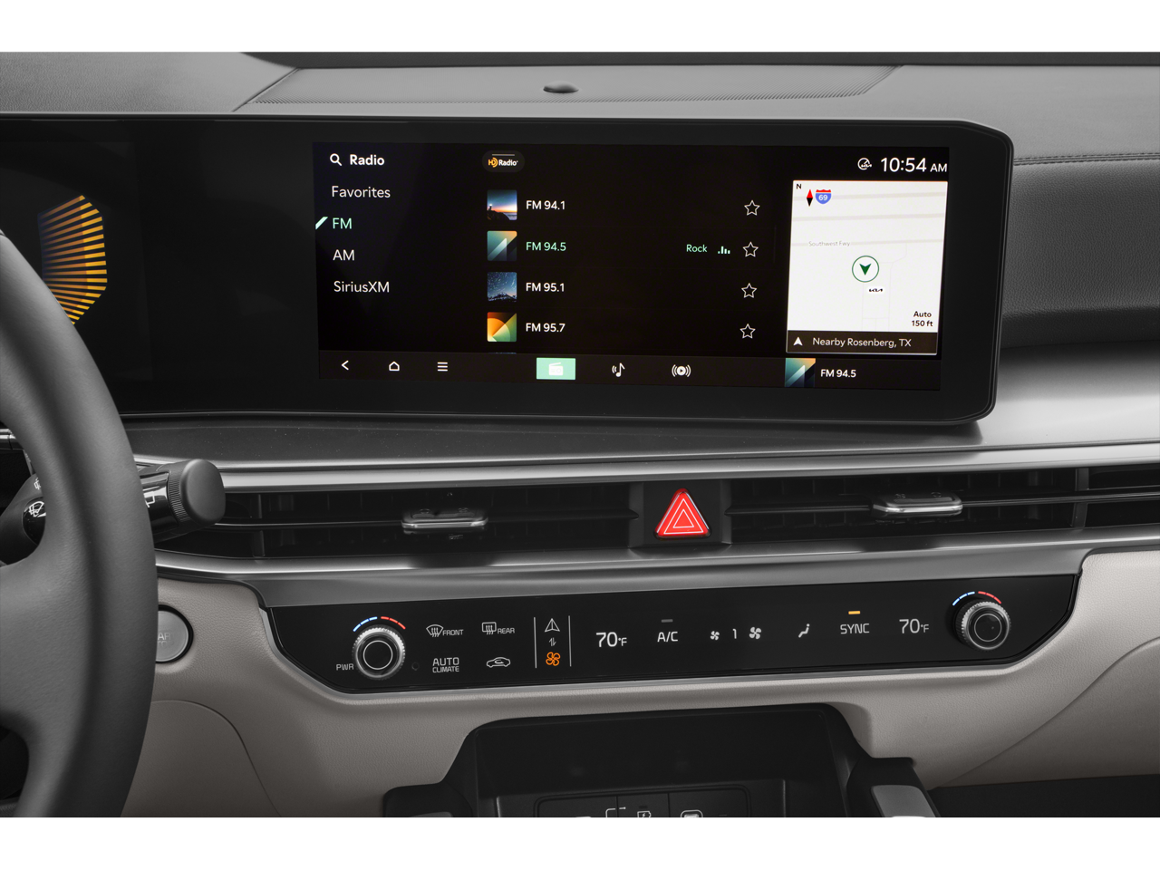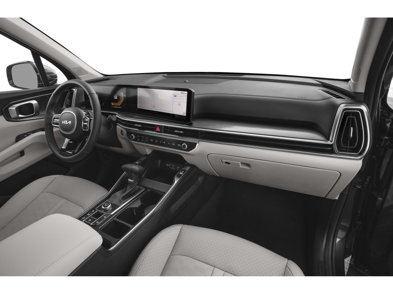 - Radio: AM/FM Standard Sound System -inc: 12.3" ccNC touchscreen, navigation, HD Radio, Bluetooth® w/audio remote control, wireless Android Auto and wireless Apple CarPlay, voice recognition, Sirius XM, modem, Kia Connect, Wi-Fi hot spot, Over-The-Air Updates (OTA), 6 speakers and USB