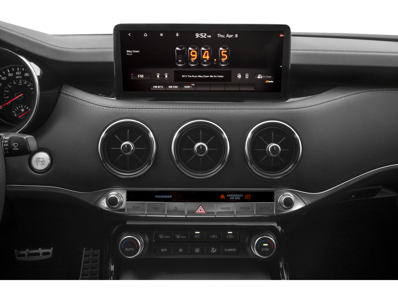 - Radio: harmon/kardon AM/FM/MP3/HD Audio System -inc: 720 watts, navigation system, 10.25" touchscreen color display, 15-speakers including dual under-seat subwoofers, 12 channel external amplifier, Quantum Logic surround sound, Clari-Fi signal enhancing technology, USB input, Android Auto/Apple CarPlay smartphone integration, Bluetooth® wireless connectivity w/voice recognition, steering-wheel-mounted controls, SiriusXM satellite radio and UVO Link